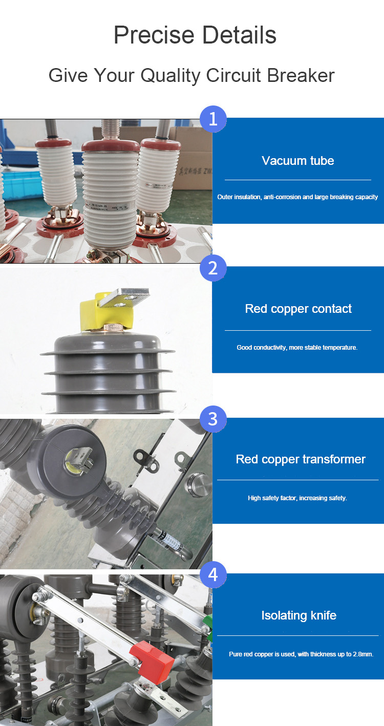 ZW32-12 outdoor high-voltage vacuum circuit breaker is an outdoor power distribution equipment with a rated voltage of 12kV and three-phase AC 50Hz. It is suitable for protection and control in power distribution systems of substations and industrial and mining enterprises, as well as places where rural power grids are frequently operated. It can also be used as power distribution, control of ring network power supply units and terminal equipment, and protection of electrical equipment. When the circuit breaker is combined with the disconnector, it can also be used as a section switch. It is mainly used to break and close the load current, overload current and short-circuit current in the power system. The vacuum interrupter adopts patented sealing technology, and the external insulation adopts silicone rubber bushing, which has long service life, high reliability, good weather resistance, convenient transportation and high cost performance. The operating mechanism is a miniaturized, highly reliable spring operating mechanism with simple structure and a mechanical life of 20000 times. If the advanced permanent magnet mechanism is adopted, the mechanical performance will be more stable and reliable; It can also be equipped with a manual opening and closing mechanism, which can be manually opened and closed on site when necessary.